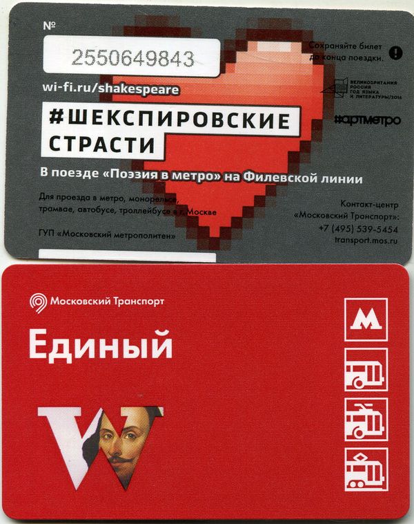 Страна эмитент: РФ Город Москва Год: 2016 Материал: плотная бумага Состояние: как на скане Описание: Шекспировские страсти в поезде "Поэзия в метро" на Филёвской линии. Артметро.