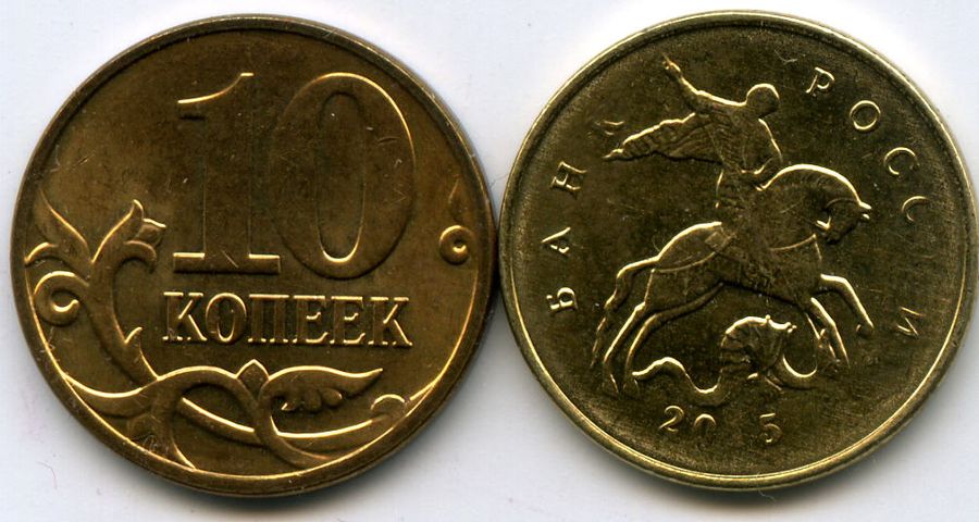 Монета 10 копеек М 2015г непрочекан Россия 195 руб.
