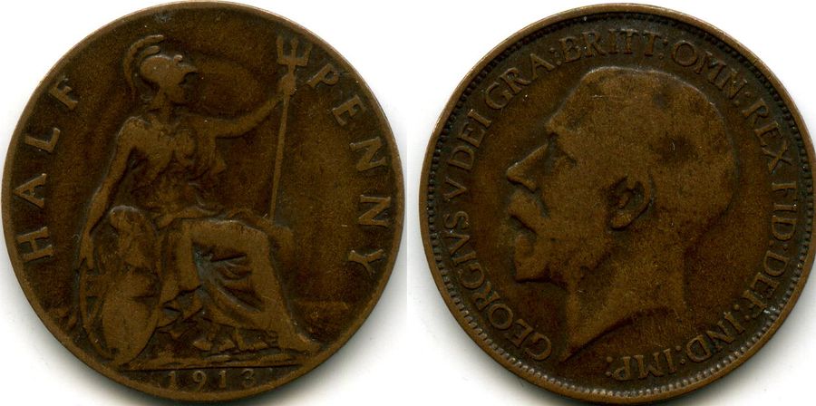 Монета 1/2 пенни 1913г Великобритания 85 руб.