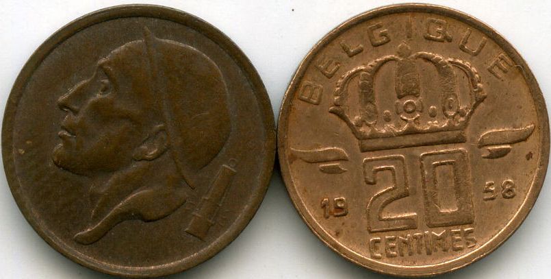 Страна эмитент: Бельгия Год чеканки: 1958, надпись на французском языке Материал: бронза Состояние: как на скане Описание: профиль мужчины, корона