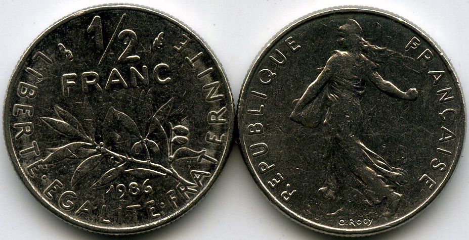 Монета 1/2 франка 1986г Франция
