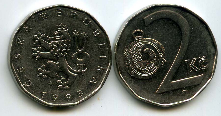 Монета 2 кроны 1993г Чехия