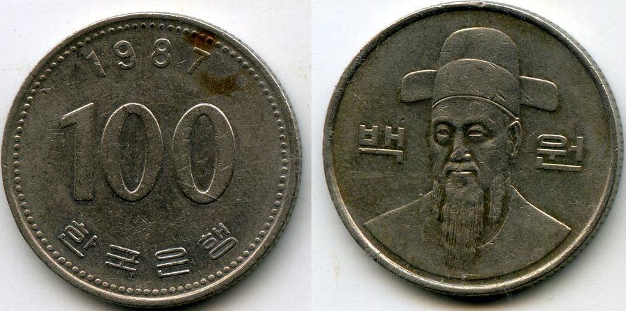 Страна эмитент: Корея Южная Год чеканки: 1987 Материал: сплав Состояние: как на скане Описание: профиль корейца