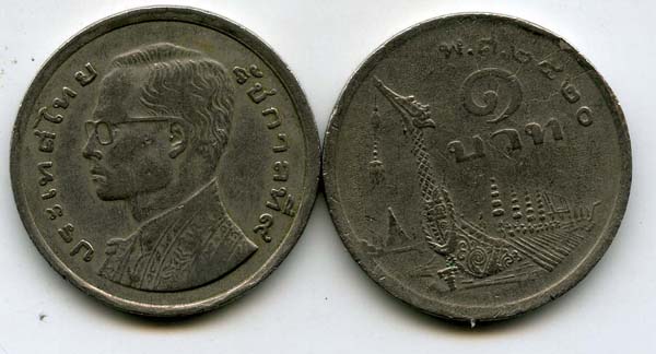 Страна эмитент: Таиланд Год чеканки: 2520г INSERT INTO `products_description` VALUES (1977г) Материал: сплав Состояние: как на скане Описание: профиль короля Рамы 9
