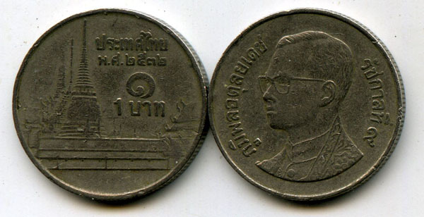 Страна эмитент: Таиланд Год чеканки: 2532г INSERT INTO `products_description` VALUES (1989г) Материал: сплав Состояние: как на скане Описание: профиль короля Рамы 9