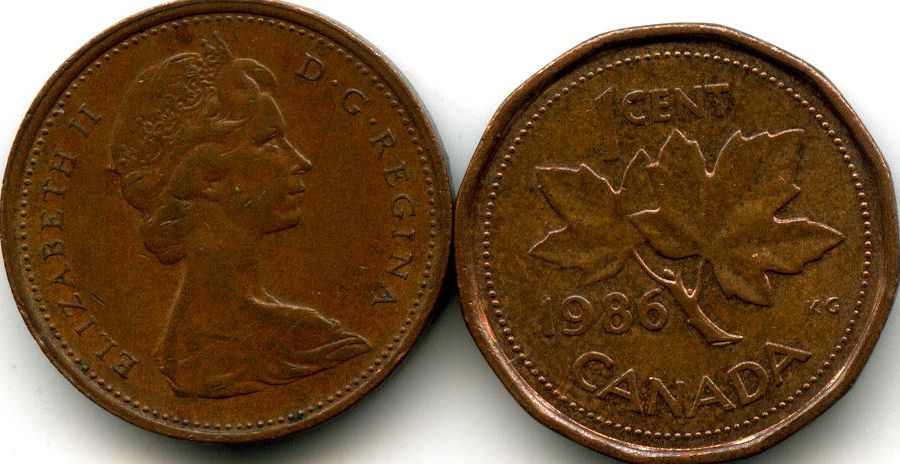 Монета 1 цент 1986г Канада 17 руб.