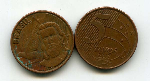 Монета 5 сентавос 2007г Бразилия 25 руб.