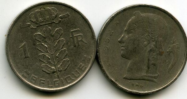 Монета 1 франк 1952г фр Бельгия