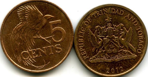 Страна эмитент: Тринидад и Тобаго Год чеканки: 2012 Материал: бронза Состояние: как на скане Описание: райская птица, герб страны