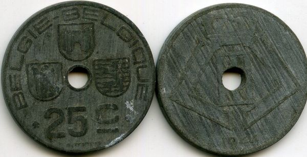 Страна эмитент: Бельгия Год чеканки: 1944 Материал: цинк Состояние: как на скане Описание: три шита, надпись на 2-х языках,сначала на фламандском