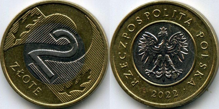 Страна эмитент: Польша Год чеканки: 2022 Материал: биметалл Состояние: как на скане Описание: герб страны орёл с короной