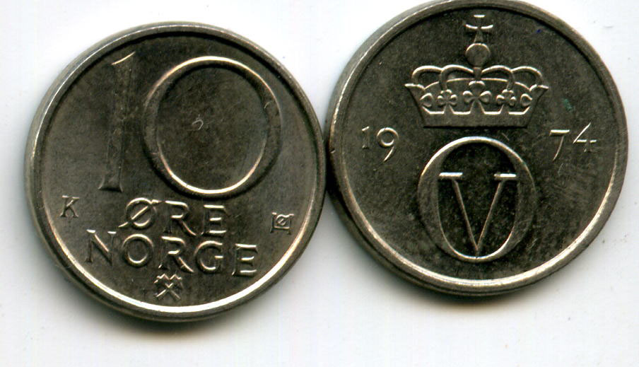 Страна эмитент: Норвегия Год чеканки: 1974 Материал: сплав Состояние: отличное Описание: королевкий вензель Олафа 5