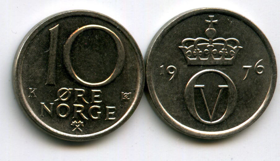 Страна эмитент: Норвегия Год чеканки: 1976 Материал: сплав Состояние: отличное Описание: королевкий вензель Олафа 5