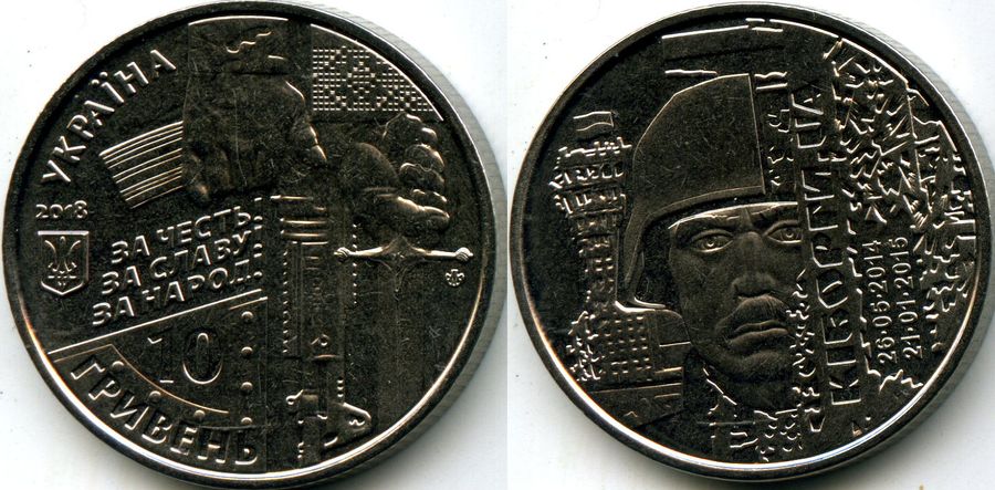 Монета 10 гривен 2018г Киборги Украина 255 руб.
