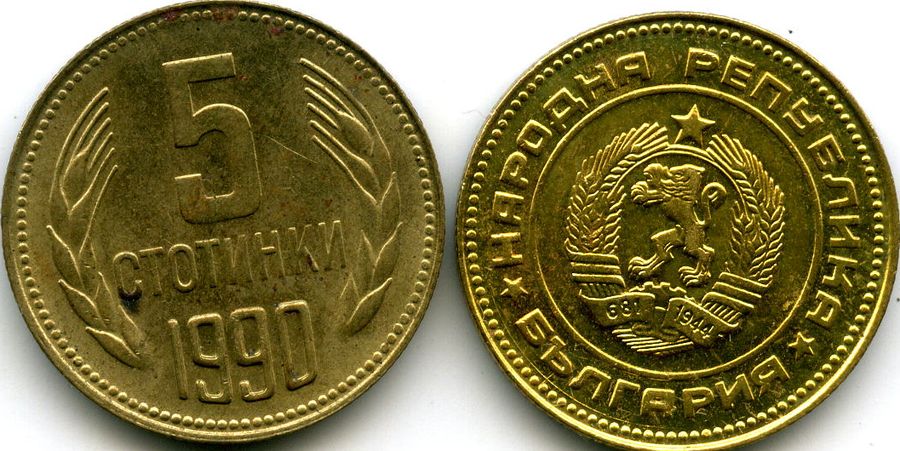 Монета 5 стотинок 1990г Болгария 45 руб.