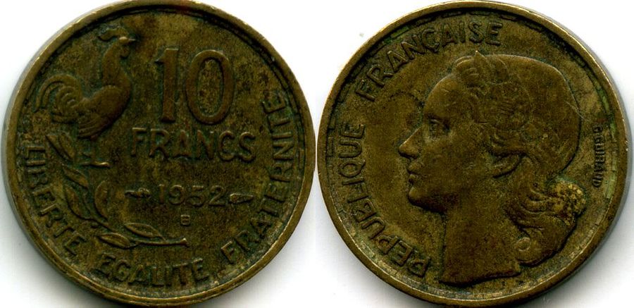 Страна эмитент: Франция Год чеканки: 1952, двор В Материал: алюминиевая бронза Состояние: как на скане Описание: профиль девушки, петух, лозунг СВОБОДА, РАВЕНСТВО, БРАТСТВО