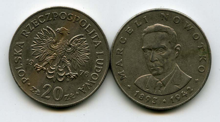 Монета 20 злотых Марсель Новотко  1976г Польша