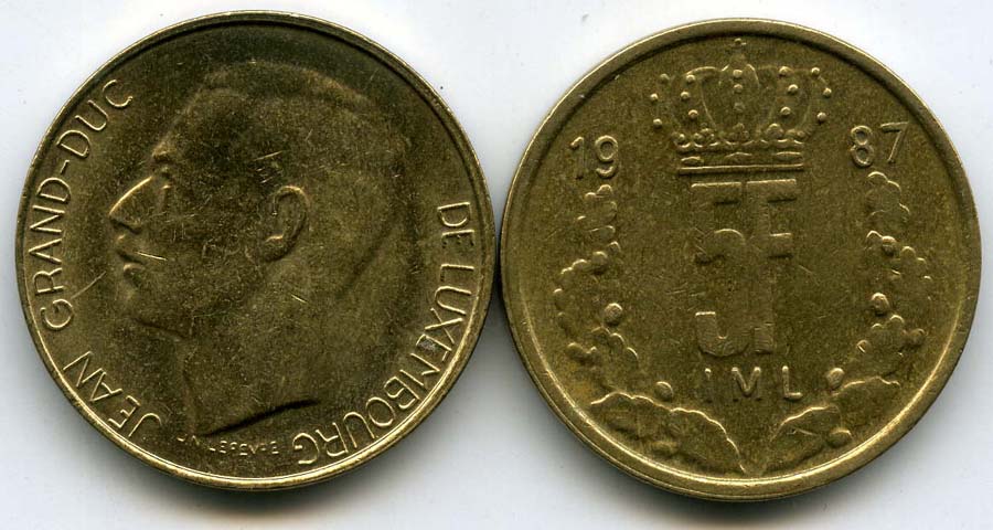 Страна эмитент: Люксембург Год чеканки: 1987 Материал: сплав Состояние: как на скане Описание: профиль герцога Жана Лефевра (Великого), корона, две дубовые ветви