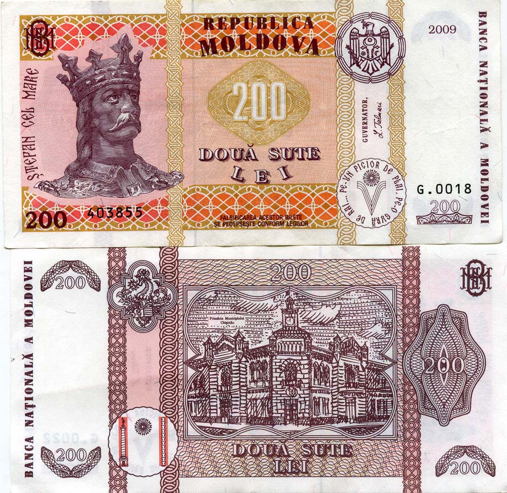 Страна эмитент: Молдова Год печати: 2009 Материал: бумага Состояние: как на скане Описание: портрет Стефана Челмаре - основателя Кишинёва, здание примэри́и Кишинёва