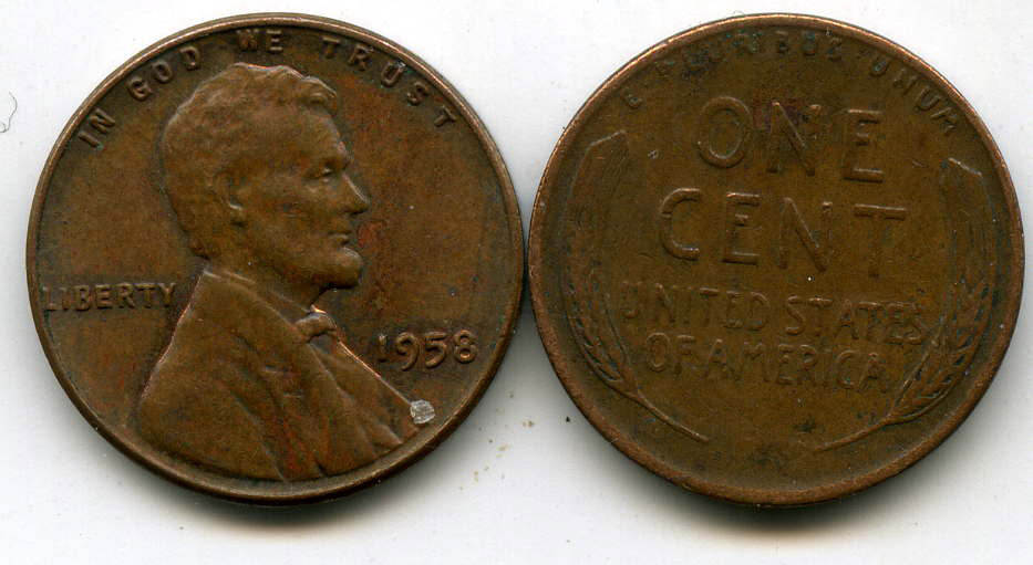 Страна эмитент: Соединённые Штаты Америки Год чеканки: 1958 Материал: бронза Состояние: как на скане Описание: профиль Линкольна