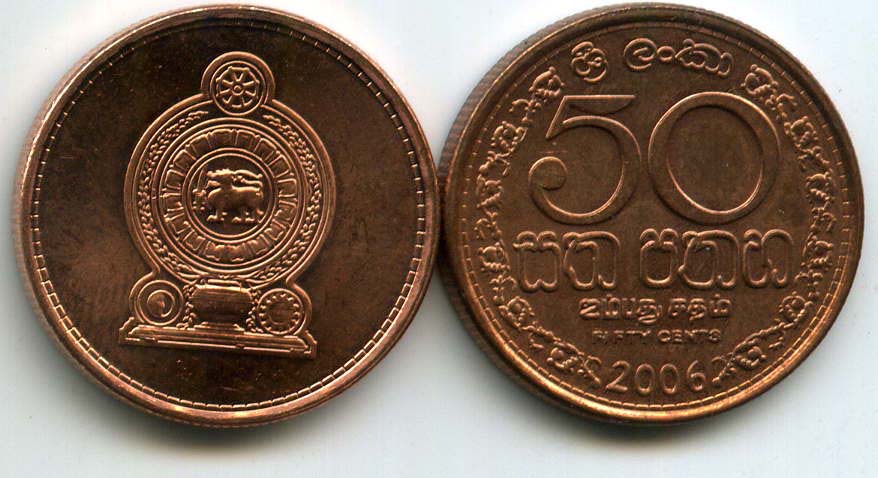 Монета 50 центов 2006г Шри-Ланка 45 руб.