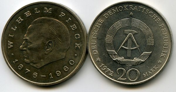 Страна эмитент: ГДР Год чеканки: 1972 Материал: никель Состояние: отличное Описание: профиль Вильгельма Пика 1876-1960 первого президента ГДР 1949-1960