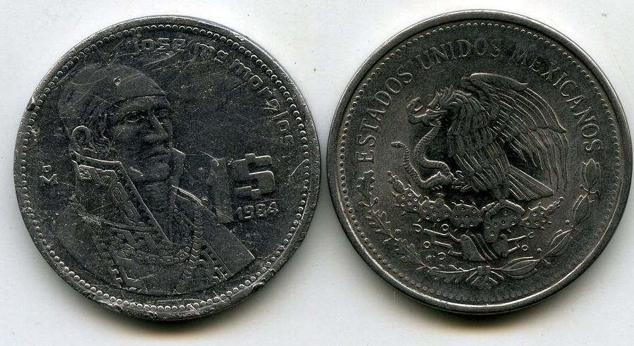 Страна эмитент: Мексика Год чеканки: 1984 Материал: сплав Состояние: как на скане Описание: портрет Жозе де Моралеса, герб страны