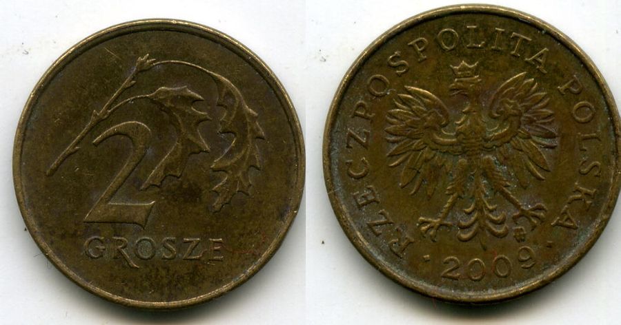 Монета 2 гроша 2009г Польша