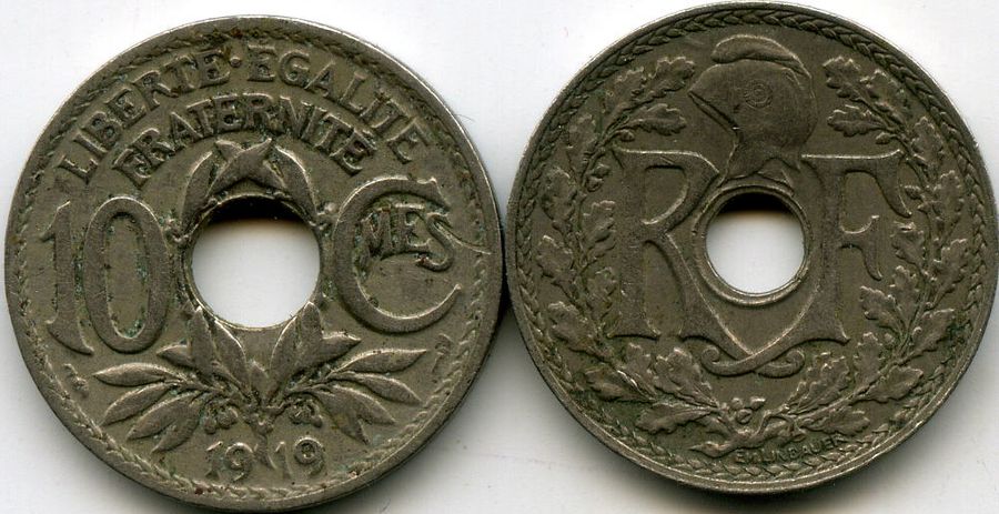 Страна эмитент: Франция Год чеканки: 1919 Материал: сплав Состояние: как на скане Описание: профиль девушки в чепце, олива и колос пшеницы, лозунг СВОБОДА, РАВЕНСТВО, БРАТСТВО